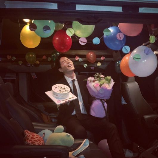 사진 속 홍종현은 자신의 벤 안에 앉아 행복하게 웃고 있다. 한 손에는 꽃다발, 다른 손에는 케이크를 들고있다. 홍종현은 정장 차림으로, 차 안에는 풍선과 장식으로 가득하다.