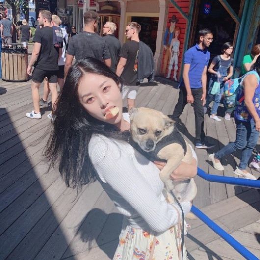 공개된 사진 속 서동주는 반려견을 안고 카메라를 응시하는 모습. 서동주는 복숭아를 입에 물고 상큼한 미모를 과시해 보는 이의 시선을 사로잡았다.