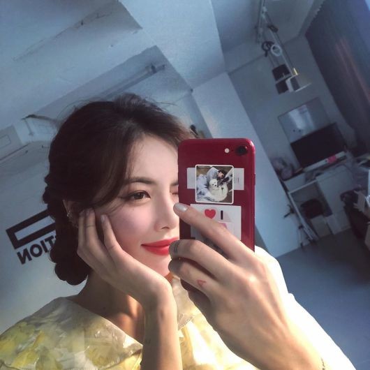차분한 노란색 블라우스에 레드립으로 포인트를 준 현아는 그동안 보여줬던 섹시한 모습 대신 청순한 비주얼을 자랑하고 있다.