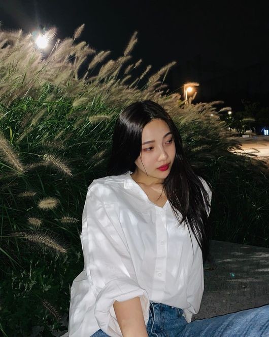 공개된 사진 속 조이는 갈대밭에 앉아 포즈를 취하고 있다. 조이는 눈을 내리깔고 새침한 표정을 지어 고혹적인 분위기를 자아낸다.