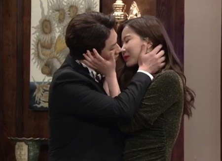 그러자 정상훈은 "저야 좋지만···. 진짜합니다"라고 말하고 아슬아슬한 키스신을 연출했는데, 키스 직후 김준현, 안영미 등은 "너네가 위장부부지? 5년씩이나 같이산 부부가 키스를 왜 해"라며 "가족끼리 키스가 웬말이야. 난 결혼식 하는날 키스를 끊었어"라고 말해 현장을 웃음바다로 만들었다.