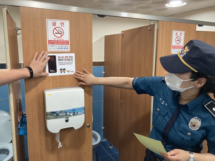 양산경찰서(서장 정성학) 여성 청소년계 는, 9. 2.(목) 오전 10시경 최근 여성이 안심하고 공중화장실을 이용할수 있도록 양산공설운동장 개방화장실을 대상으로 불법카메라 설치여부를 시설관리공단과 함께 점검했다.