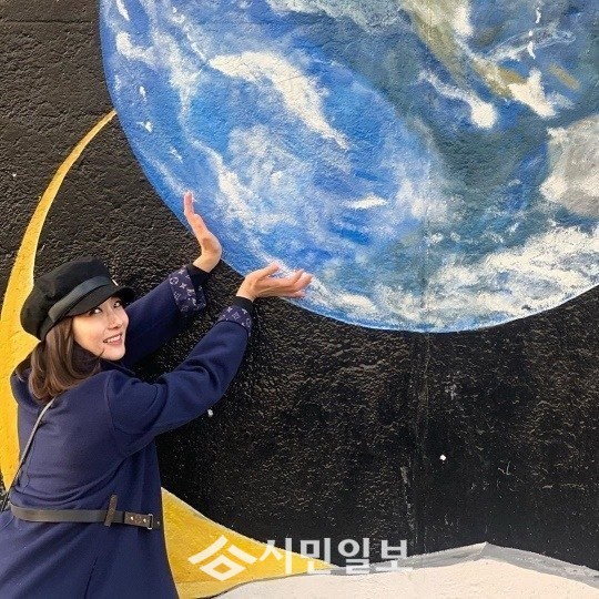 공개된 사진 속 이인혜는 지구 모형의 벽화 앞에서 단아하면서 사랑스러운 자태를 뽐내 눈길을 사로잡았다.
