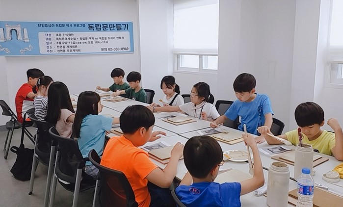 천연동 독립문 만들기 프로그램에 학생들이 참여하고 있는 모습. (사지제공=서대문구청) |