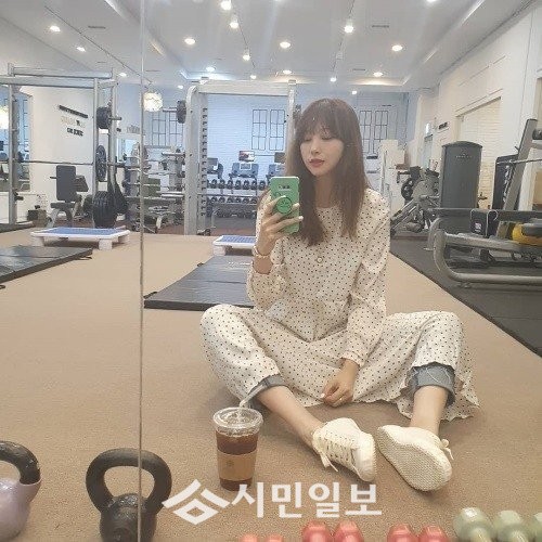 공개된 사진에는 운동 하러 가서 거울을 통해 셀카를 찍고 있는 유인영의 모습이 담겨 남심을 사로잡았다.
