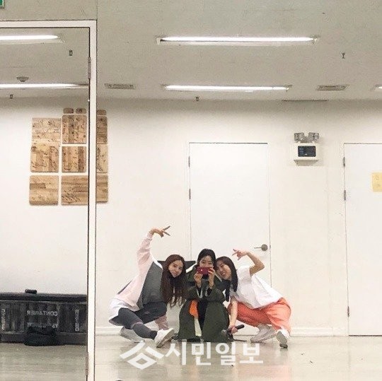 사진 속 남규리는 연습 중 거울을 바라보며 김연지, 이보람과 셀카를 찍고 있는 모습으로 훈훈함을 자아냈다.