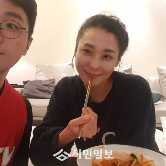 공개된 사진 속 한고은은 남편 신영수와 집에서 식사를 하고 있는 모습으로 달달함을 자아냈다.