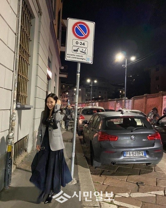 공개된 사진 속 박민영은 청순함을 뽐내며 롱원피스에 재킷을 입고 이탈리아 밀라노 거리를 거니는 모습으로 시선을 사로잡았다.