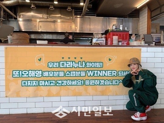 공개된 사진 속 산다라박은 '우리 다라누나 화이팅! 또!오해영 배우분들 스탭분들 WINNER 되세요. 다치지 마시고 건강하세요! 응원하겠습니다^^"라는 메시지가 담긴 플래카드 앞에 쪼그려 앉아 손하트를 그리고 있는 모습으로 훈훈함을 자아냈다.