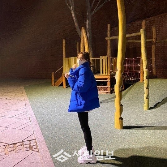 공개된 사진 속 허영지는 놀이터를 배경으로 우월한 비율과 미모를 뽐내며 마스크를 쓴 채 카메라를 바라보고 있는 모습으로 시선을 사로잡았다.