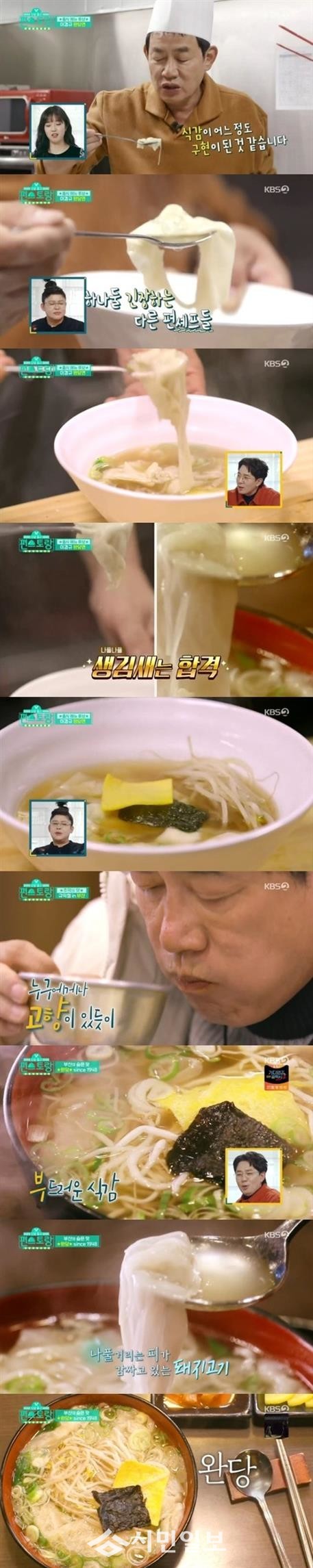 특히 모두의 시선을 고정시킨 메뉴는 생소한 완당. 장인정신으로 만든 완당은 부산 사람들만 알고 있는 음식으로, 만두도 아니고 수제비도 아닌 것이 부드러운 식감과 시원한 국물로 감탄을 자아냈다.