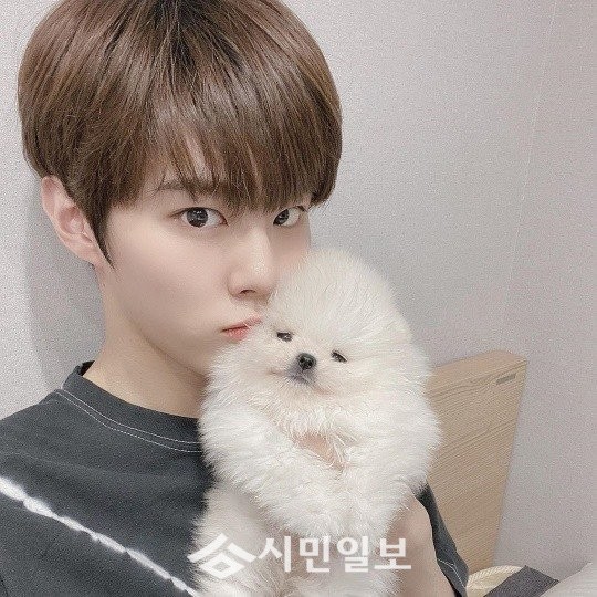 사진 속 김우석은 반려견을 안고 귀여운 분위기를 자아내며 여심을 사로잡았다.