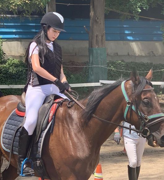 공개된 사진 속에는 승마를 배우고 있는 조현의 모습이 담겼다. 조현은 “하드하게 가르쳐주셔서 감사합니다. 베리굿 노래 스트리밍 하면서 운동했습니다”라는 글로 승마 연습을 했음을 밝혔다.