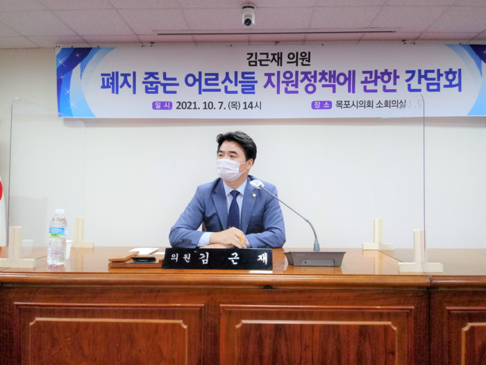김근재 의원(삼향동ㆍ옥암동ㆍ상동)이 폐지 줍는 어르신들을 위한 정책지원 간담회를 7일에 가졌다.