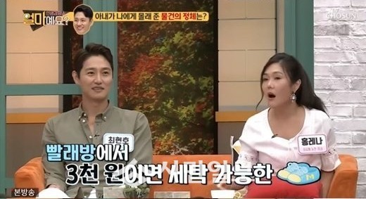 홍레나는 "집 앞 세탁소에서 3000원이면 빨래를 할 수 있다. 빨래방에 맡기려고 했다. 짠돌이가 그거 3000원 뭐 하냐고 세탁비 아끼려고 자기가 한 거다"라고 진실을 털어놨다.