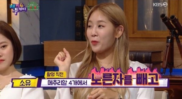 최근 방송된 KBS2 예능프로그램 '해피투게더 4'는 '음원의 크리스마스'로 꾸며져 가수 소유가 게스트로 함께했다.
