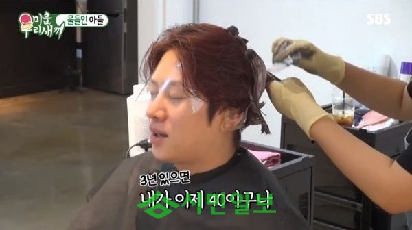 김희철은 "내 30대 마지막 탈색"이라고 말했고, 미용사는 "마흔 넘어가면 못 한다"고 답했다.