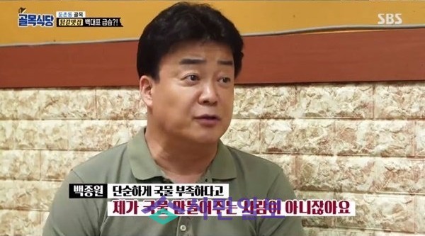 그러나 백종원은 "내가 단순하게 국물 부족하다고 국물 만들어주는 사람은 아니다"라고 일침을 가했다.