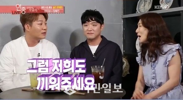 최근 방송된 KBS 2TV 예능 프로그램 '연예가중계'에서는 장혜진은 바이브 멤버 윤민수, 류재현과 함께 다양한 이야기를 나눴다.