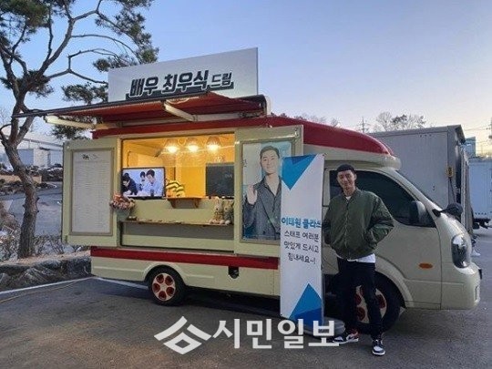공개된 사진 속 박서준은 최우식의 간식차 선물 앞에서 인증샷을 남기고 있는 모습으로 훈훈함을 자아냈다.