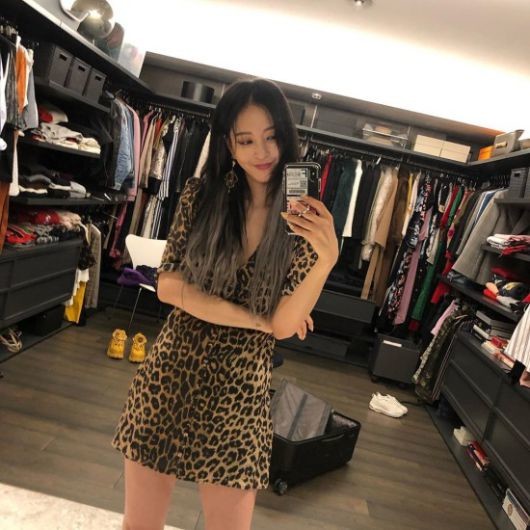 공개된 사진 속 한예슬은 자택 드레스 룸에서 여행지에서 입을 의상을 꺼내 입어 보고 있는 모습. 한예슬은 초미니를 입고 아찔한 각선미를 뽐내 시선을 모았다.