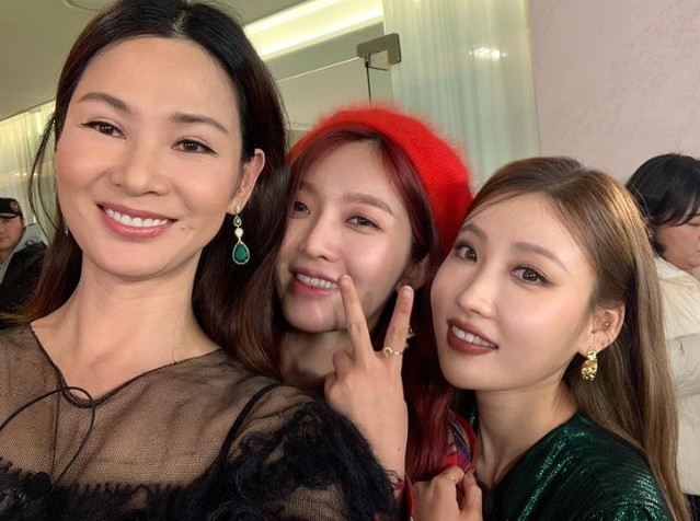 공개된 사진 속 이소라는 AOA 찬미, 이사배와 함께 사랑스러운 미모를 뽐내고 있다.