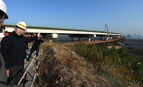 [인천=김형만 기자] 유정복 인천시장은 11월 13일 제3연륙교 건설사업의 현안 점검을 위해 현장을 방문했다.
