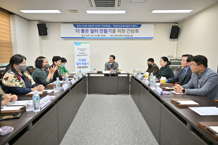 [목포=황승순 기자]‘목포여성새로일하기센터’(관장 정현정)와 목포시 의원연구단체 “목포맑음”은 4월 24일(월) 목포시의회 시민의방(1층)에서 돌봄종사자, 목포시 노인장애인과 담당 부서 공무원, “목포맑음”소속 시의원 등 16여명이 참석해 “더 좋은일터 만들기” 주제로 간담회를 개최했다.