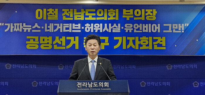 [남악=황승순 기자]이철(더불어민주당, 완도1) 전남도의회 부의장이 자신에 대한 허위사실 유포 의혹에 대해 법적 대응에 나섰다.