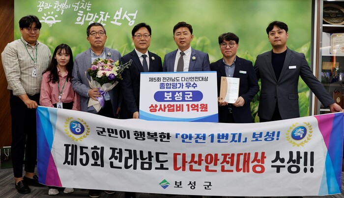 [보성=황승순 기자]보성군은 지난 2일 전라남도 주관 ‘제5회 다산안전대상’ 종합평가 우수기관으로 선정돼 상사업비 1억 원을 확보했다.