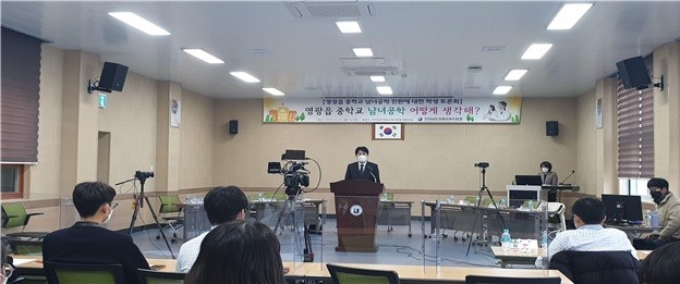 | ▲ 영광교육지원청은 영광읍 중학교 남녀공학 전환의 당사자인 학생들의 다양한 의견을 청취하고자 ”영광읍 중학교 남녀공학 전환에 대한 학생 토론회“를 지난 달 31일 대회의실에서 실시했다 출처 : 전남교육통(https://www.jnedu.kr) 토론회 사진 |