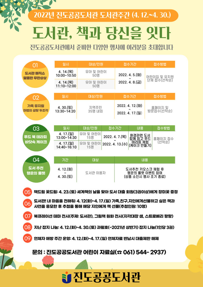 | ▲ 진도공공도서관, 도서관주간 4월중 다양한 행사 운영(출처=진도공공도서관) |