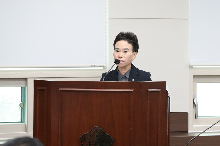 | 안산시의회 이지화 의원이 지난 10월 17일 제285회 임시회 기획행정위원회에서 안산투명사회협약 실천 및 그 지원에 관한 조례 폐지조례안’에 대해 제안설명을 하고 있는 모습. 사진제공=안산시 의회 |