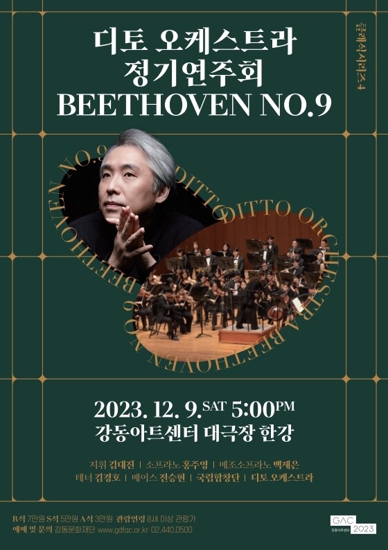 이번 디토 오케스트라의 올해 마지막 연주회는 최정상 피아니스트이자 지휘자인 김대진(現 한국예술종합학교 총장)이 지휘봉을 잡아 루트비히 판 베토벤의 마지막 교향곡이자 오랜 세월에 걸쳐 작곡된 역작인 교향곡 제9번 ‘합창’을 연주한다.