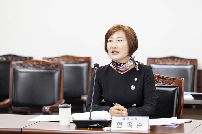 | 안산시의회 현옥순 의원이 지난 10월 18일 제285회 임시회 문화복지위원회에서 ‘안산시 자립준비청년 등의 자립지원에 관한 조례안’에 대해 제안설명을 하고 있는 모습. 사진제공=안산시의회 |