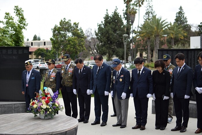 참배 일정에 동행한 오렌지카운티 재향군인회 박굉정 미남서부지회장은 “많은 동포께서 협조해주신 덕분에 이곳 기념비가 우리나라와 미국의 우호 관계의 상징이 되었다”고 말했다.