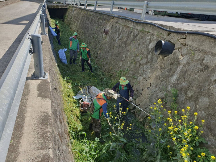이날 활동에는 방재단원 10여 명이 참여해 낫과 톱, 예초기를 동원하여 유수흐름을 방해하는 잡초 및 잡목들을 제거했다.