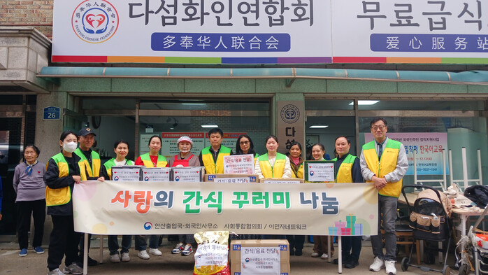 | ▲ 안산출입국·외국인사무소는 지난 8일 안산시 단원구 원곡동에 위치한 다섬화인연합회 무료급식소를 방문 복지 사각 지역에 있는 내·외국인 어르신을 위해 간식꾸러미 후원 및 봉사활동을 진행했다 /사진제공=안산출입국 외국인 사무소 |
