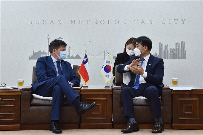 [부산=최성일 기자] 부산시(시장 박형준)는 최근 이성권 경제 부시장이 마티 아스 프랑케(Mathias Francke) 주한 칠레 대사를 만나 2030부산 세계 박람회 유치 지지를 요청했다고 밝혔다.