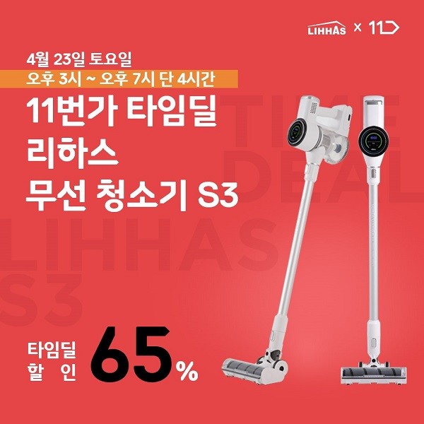 리하스 관계자는 “11번가 ‘타임딜’에서 당사 22년 신제품 ‘S3무선청소기’를 기존보다 65% 저렴한 가격으로 만나볼 수 있으니 많은 참여와 관심 부탁드린다”라고 전했다.