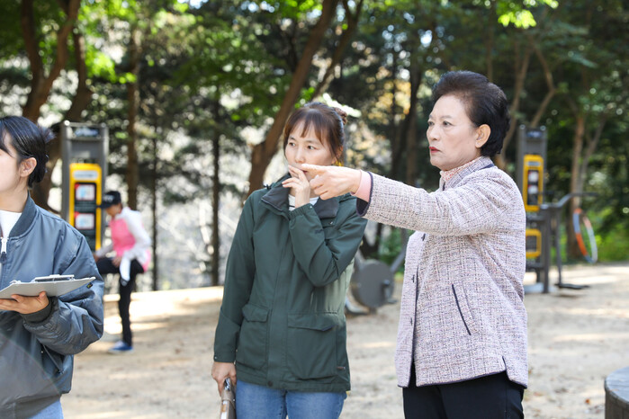 이진분 의원은 지난 10월 31일 먼저 원곡동, 백운동, 선부1동 주민들이 자주 찾는 ‘관산공원’을 방문해 맨발걷기 산책로 황토 보충과 CCTV 및 계단 보수, 운동기구 설치 등의 문제를 논의했다.