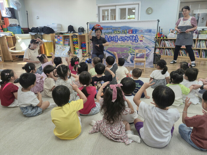 [시흥=송윤근 기자] 경기 시흥시지속가능발전협의회(공동대표 임병택 시흥시장, 오인열 시흥시의회 의장, 김주석 대표회장 이하 시흥시지속협)는 지난 8월 27일부터 시흥시 내 어린이집과 유치원 27곳을 대상으로 지속가능발전목표(SDGs)를 주제로 한 인형극 교육 프로그램 ‘블루카본 요정의 비밀’을 운영하고 있다.