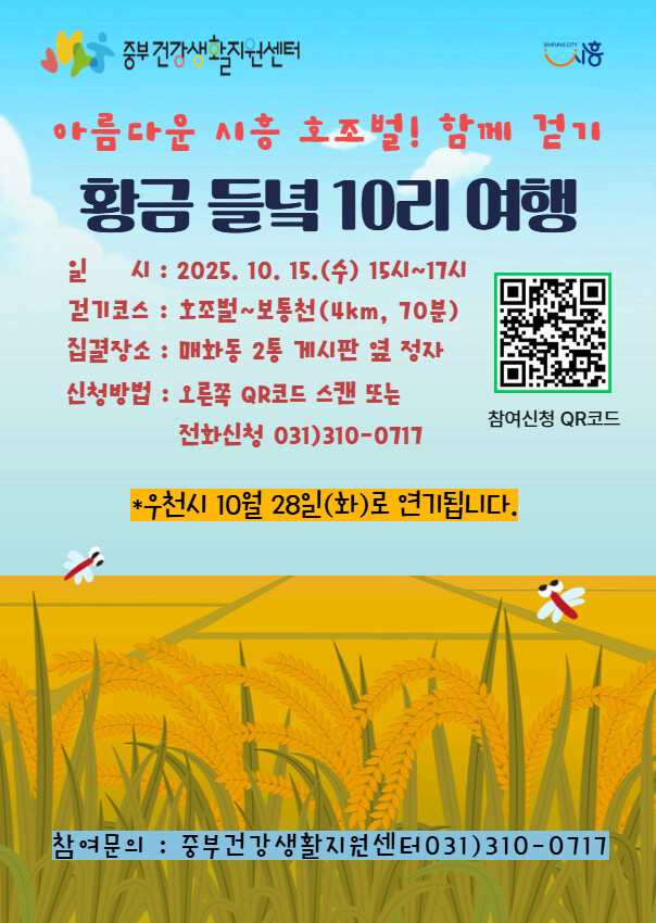 시는 호조벌의 아름다운 자연을 만끽하며 이웃과 함께하는 특별 걷기 프로그램에 많은 시민의 참여를 기대하고 있다. 다만, 우천 시에는 10월 28일로 행사가 연기된다.