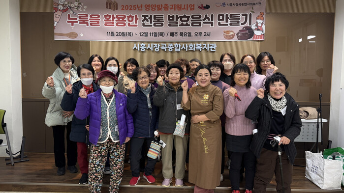 | ▲ 시흥시장곡종합사회복지관은 오는 11월 20일부터 12월 11일까지 ‘누룩을 활용한 전통 발효음식 만들기’ 프로그램 참여자들이 기념 촬영을 하고 있다 /사진제공=시흥시 |