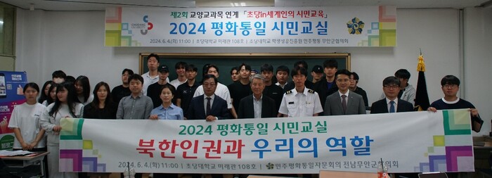 [무안=황승순 기자]초당대학교(총장 박종구)는 6월 4일(화) 대통령 직속 헌법기관인 민주평화통일자문회의 무안군 협의회(회장 김영준)와 공동으로 작년에 이어 올해 두 번째로 ‘평화통일 청년시민교실’을 개최했다.