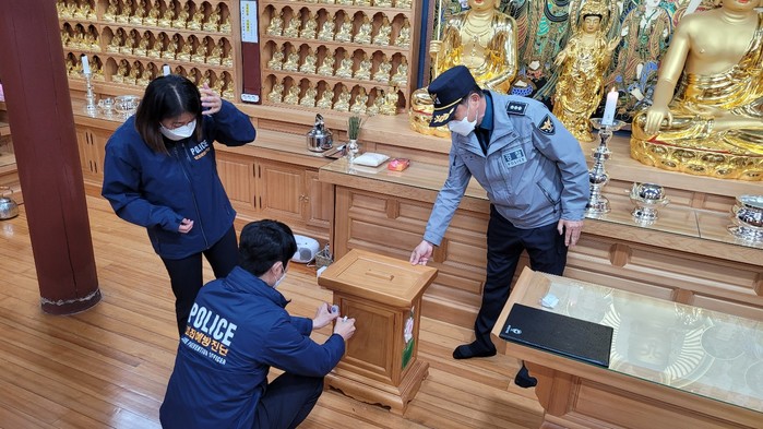 한편, 경찰관계자는 특별방범활동 기간 동안 방범시설이 취약한 사찰을 중심으로 협력단체 등 지역주민과 함께 지역안전순찰이나 탄력적 순찰활동 등을 강화하는 등 경찰 가용경력을 집중해 나갈 방침이라고 전했다.