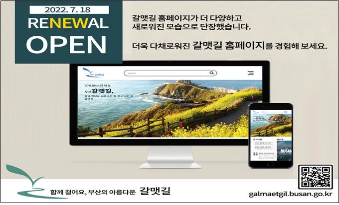 [부산=조병선 기자] 부산시(시장 박형준)는 오늘(18일) ‘부산 갈맷길’ 홈페이지를 새단장하고, 본격적인 온라인 홍보에 나선다고 밝혔다.