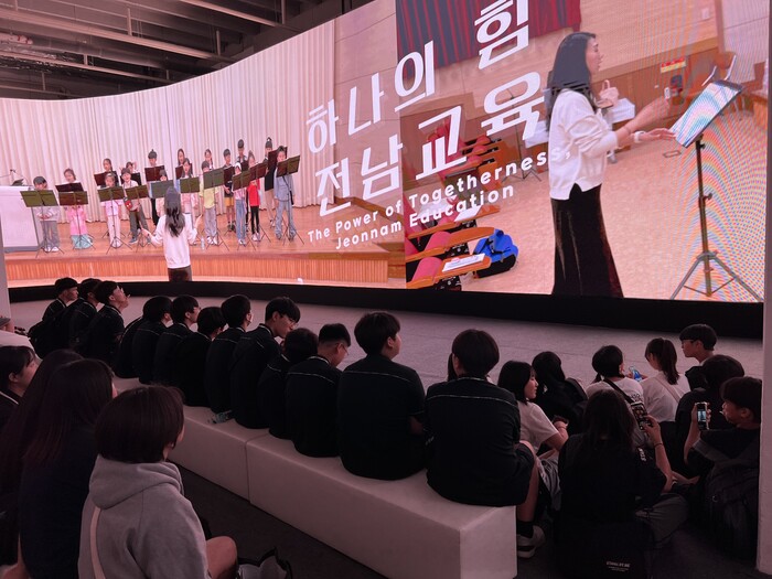 전남교육관은 전남교육이 당면하고 있는 위기와 이를 해결하기 위한 미래교육의 방향을 38.5m×6m의 대형 LED 모니터를 통해 10분 정도의 영상에 담아 보여주고 있다. 전남교육관에는 29일 박람회 개막 후 30일까지 이틀 동안 3,500여명 이상이 다녀갔다.