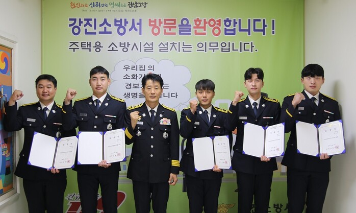 [강진=정찬남 기자] 전남 강진소방서(서장 최기정)는 26일 강진소방서에서 신규 임용 소방공무원 5명에 대한 임용장 수여식을 가졌다.