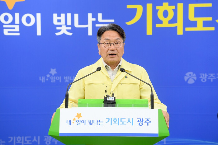 | ▲ 강기정 광주광역시장이 15일 오후 시청 브리핑룸에서 시내버스 파업 관련 대시민호소문을 발표하고 있다. /광주광역시 제공 |